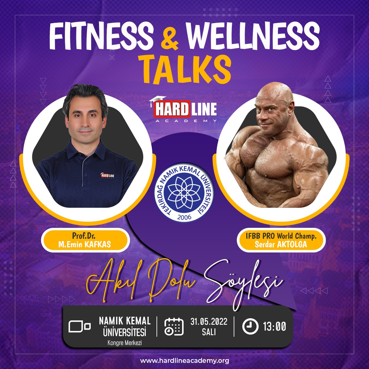 Hardline Academy Klasiği "Fitness Talks: Akıl Dolu Söyleşi" programı 31 Mayıs 2022 Saat: 14:00' de Namık Kemal Üniversitesinde. Keyifli ve bilgi dolu etkinliğimize tüm sağlık, egzersiz, beslenme, fitness ve gıda takviyesi konularına ilgi duyan meraklılar davetlidir.